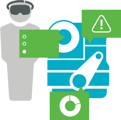 • Procedural guidance provides workers with nstruction, equipment status, and performance data while they’re working. Newer workers can become effective in the field faster, with reduced risk of novice errors. It also benefits workers of all skill levels with step-by-step depictions of equipment and process customization.